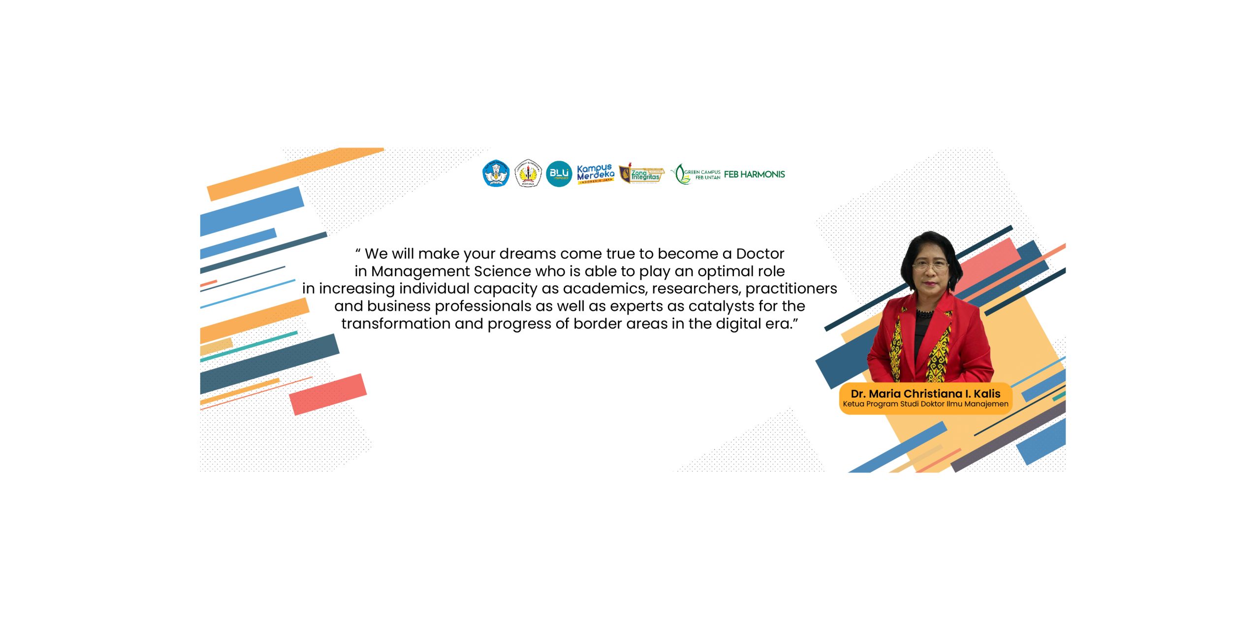 Studi pada program Doktor Ilmu Manajemen Fakultas Ekonomi dan Bisnis Universitas Tanjungpura akan memiliki kompetensi manajerial dan profesionalitas dalam menghadapi percepatan perubahan sosial, ekonomi, teknologi, dan lingkungan yang semakin kompleks dan mendunia.