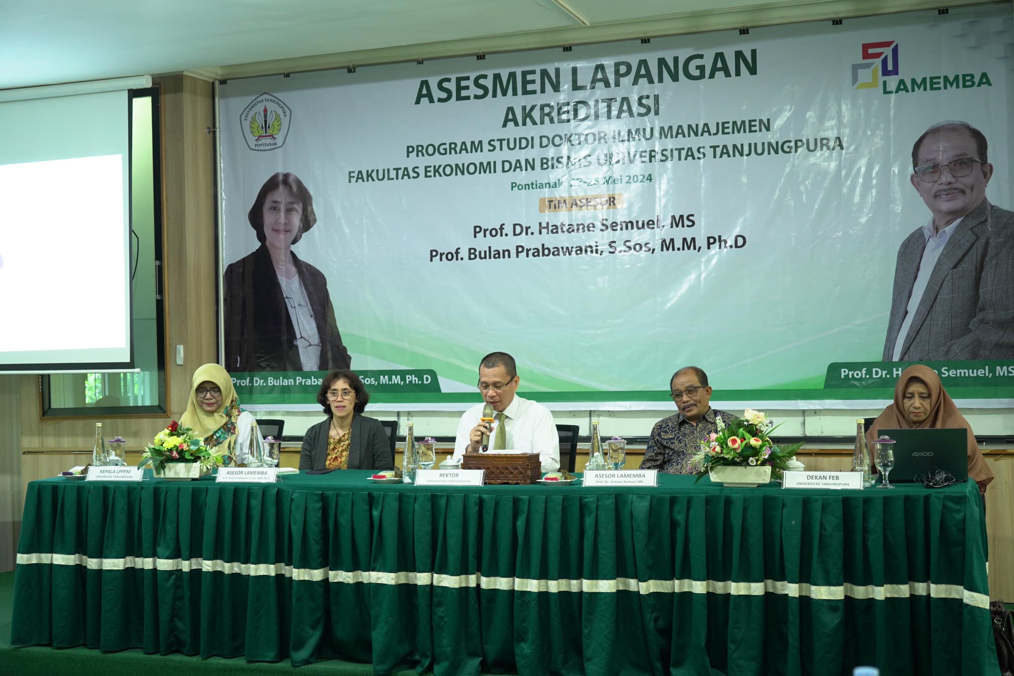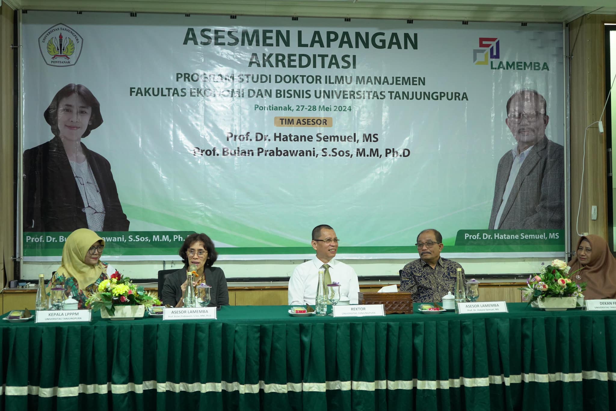 Hari Senin-Selasa, 27-28 Mei 2024 dilaksanakan kegiatan Asesmen Lapangan Akreditasi Program Studi Doktor Manajemen. Asesor yang ditunjuk untuk melakukan asesmen lapangan adalah Prof. Hatane Samuel MS dan Prof. Bulan Prabawani, S.Sos., M.M., P.hD. Kegiatan ini juga didukung oleh Para Mitra dan Stakeholder diantaranya Pimpinan Universitas Panca Bakti, Universitas Widya Darma, Yayasan IBE Pontianak, Universitas Muhamadiah Pontianak, Kepala BPPD Prov. Kalbar Bapak Sefpri Kurniadi, Kadis Perindag Kab. Bengkayang Bapak Doktor Yan, BPPD Kab. Bengkayang.