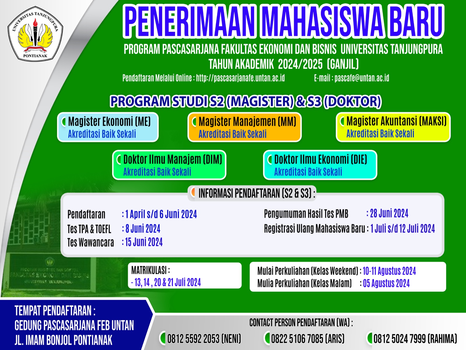 BrosurPenerimaan Mahasiswa Baru Pascasarjana Fakultas Ekonomi dan Bisnis Universitas Tanjungpura T.A 2024/2025 (Ganjil) Leave a Comment / Brosur / admin_dim