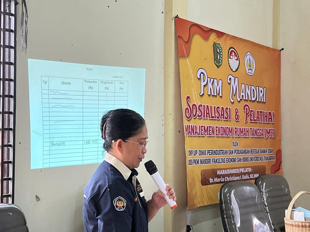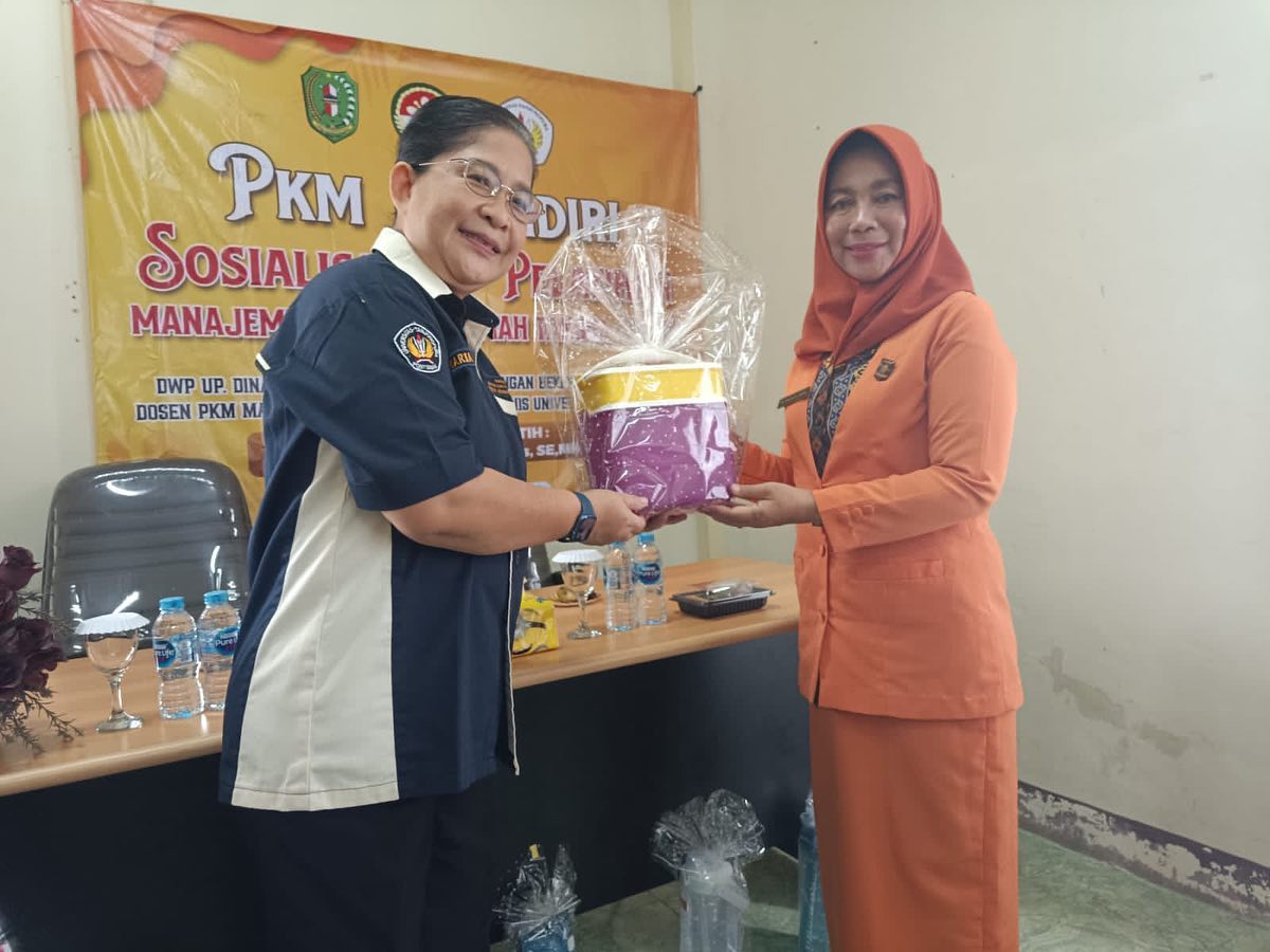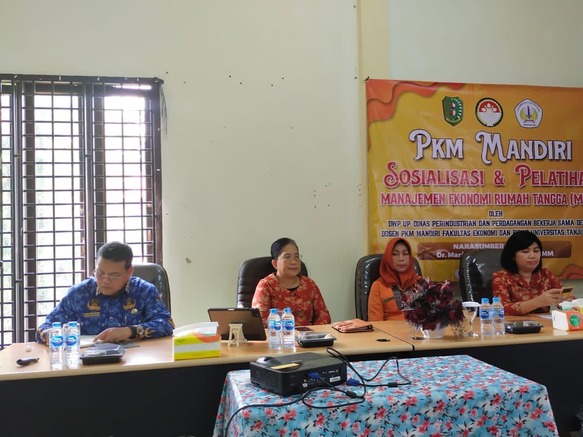 Kegiatan PKM Mandiri Sosialisasi dan Pelatihan Manajemen Ekonomi Rumah Tangga bersama keluarga besar DWP UP. DISPERINDAG Kab. Bengkayang dengan ibu Dr. Maria Christiana I. Kalis., S.E., M.M. sebagai narasumber.